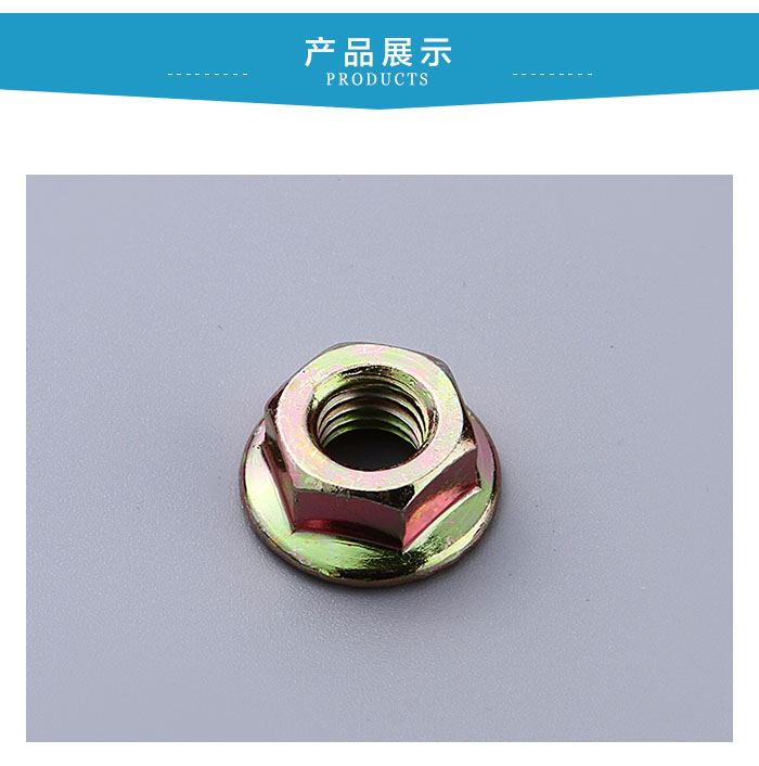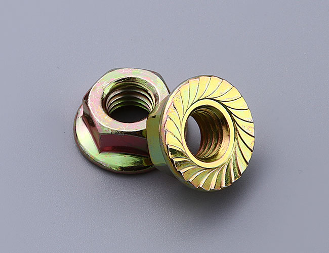 花齒防滑防松螺母的原理:在組裝時,內齒的側面彼此相對,而壓花的外表面的接觸面則咬入兩端。表面之間的相對運動產生提升張力,實現鎖定效果。