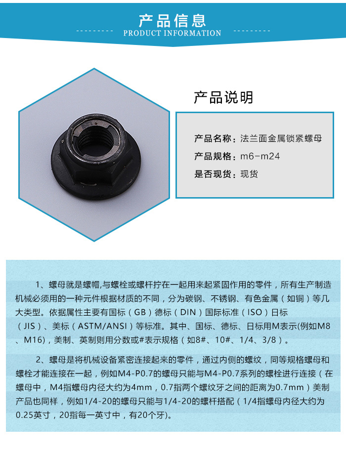 法蘭面金屬鎖緊螺母是一種新型連接緊固件,法蘭面金屬鎖緊螺母改變了在薄板上安裝零部件的傳統方式,是板件法蘭面金屬鎖緊螺母工藝的新突破,不僅可以替代焊接螺母用于薄板結構,以避免薄板焊接變形,而且可用于易變形或不易攻絲的材料結構上。